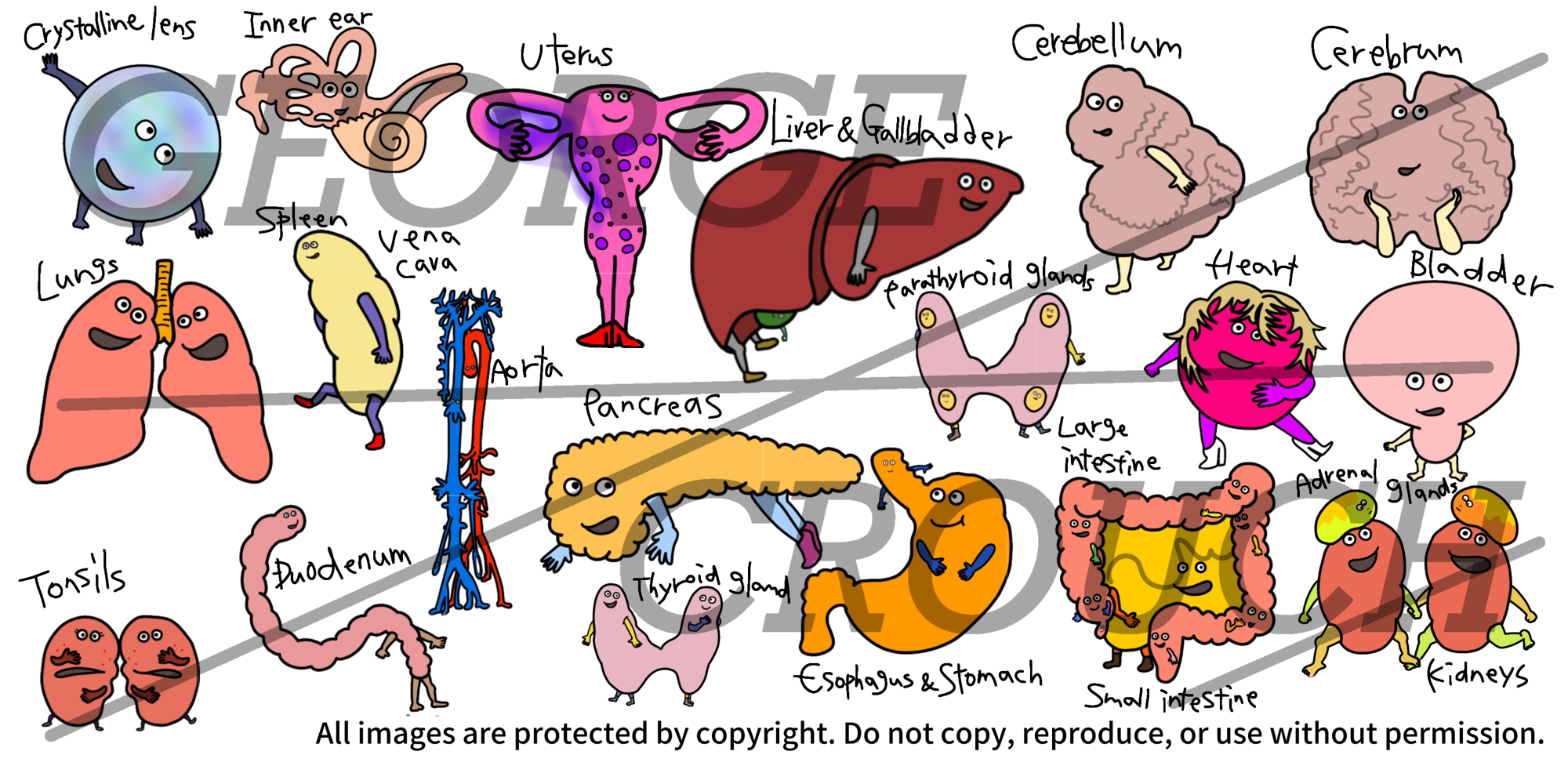 Puchiko is someone who has developed a special attachment to her own organs through her experience with illness. This is an illustration of her organs that Puchiko drew. Since she gave me permission to post it on the blog, I am sharing it with you all today. However, since it is her original artwork, I have applied some minor edits to prevent unauthorized reproduction.